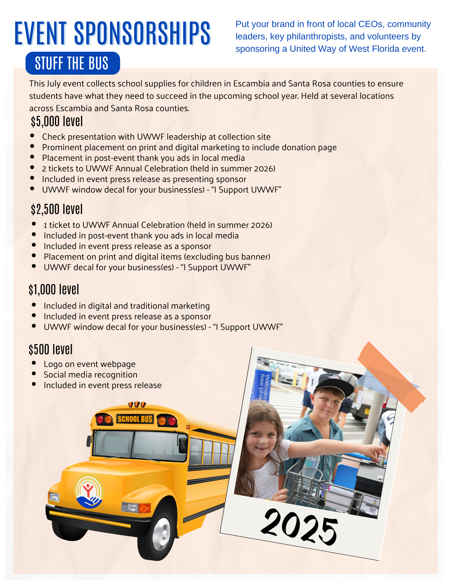 Stuff the Bus works to ensure that students in Escambia and Santa Rosa counties are equipped with the tools they need to succeed in the upcoming school year. It is the only school supply drive supported by both local school districts.
